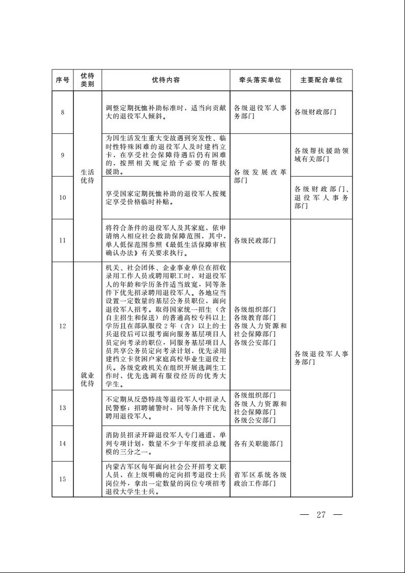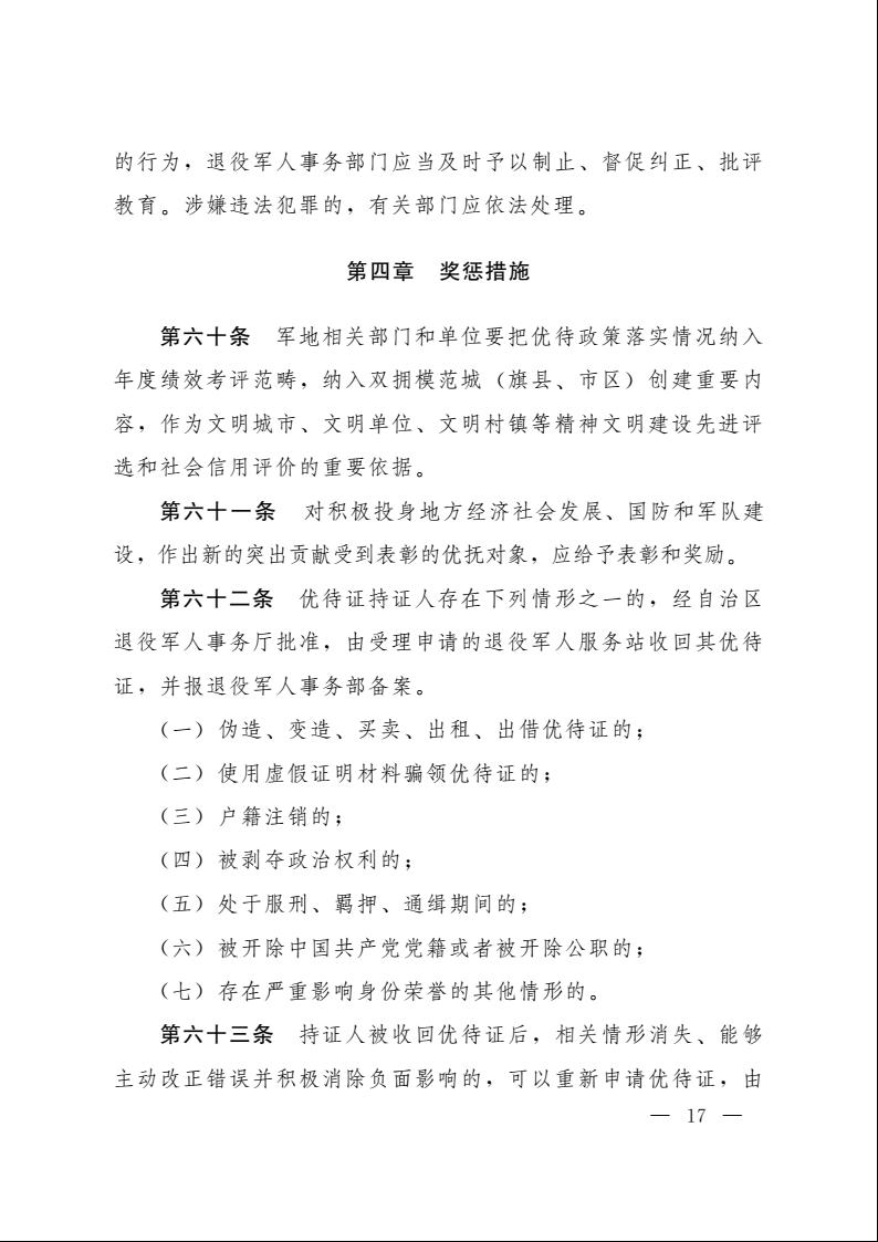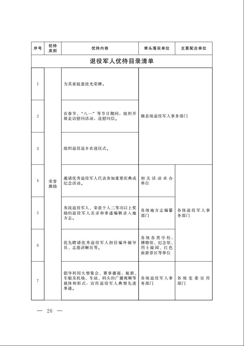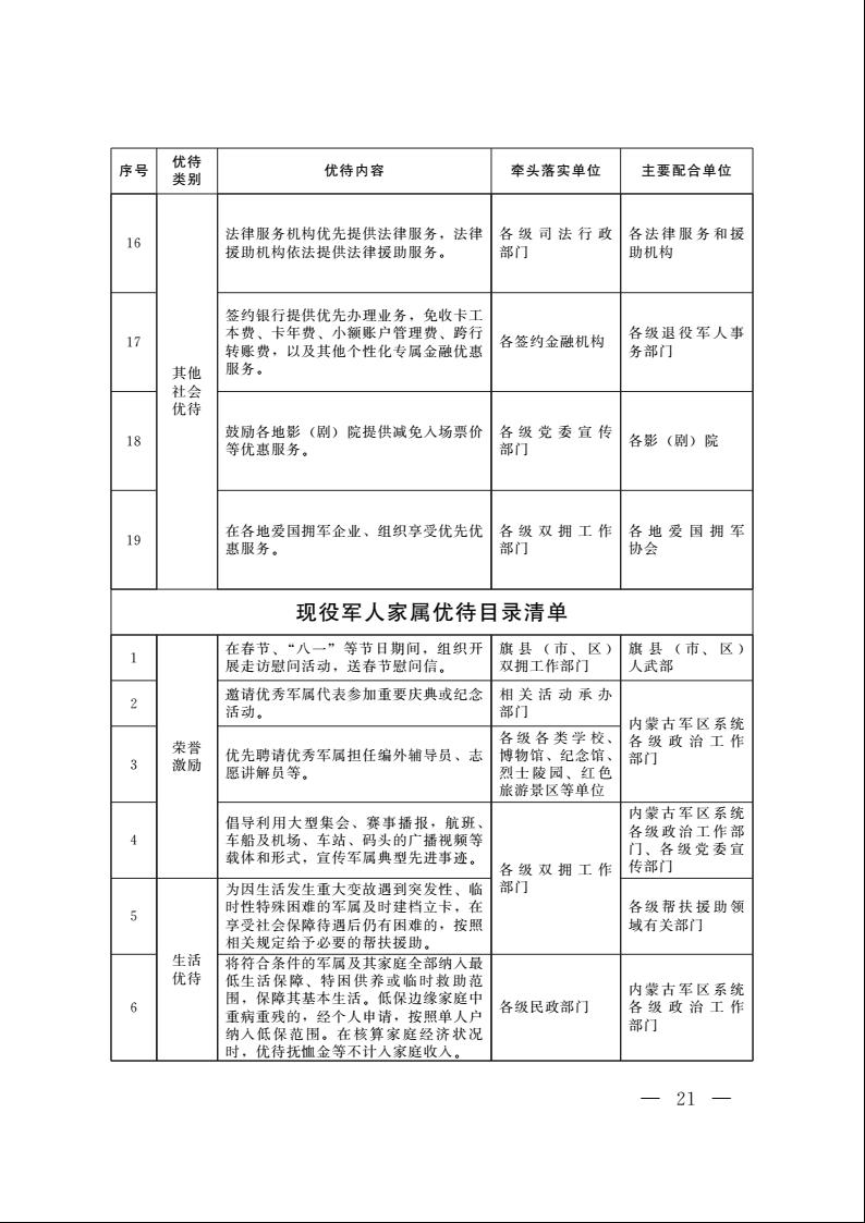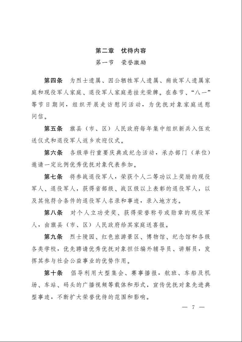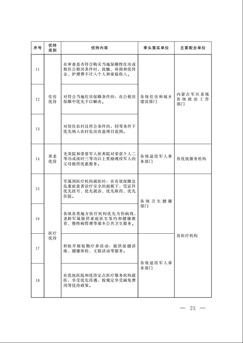 为深入贯彻习近平总书记关于退役军人工作重要论述,扎实做好军人军属、退役军人和其他优抚对象优待工作,现将《内蒙古自治区军人军属、退役军人和其他优抚对象优待工作实施办法(试行)》印发你们,请认真抓好贯彻落实。